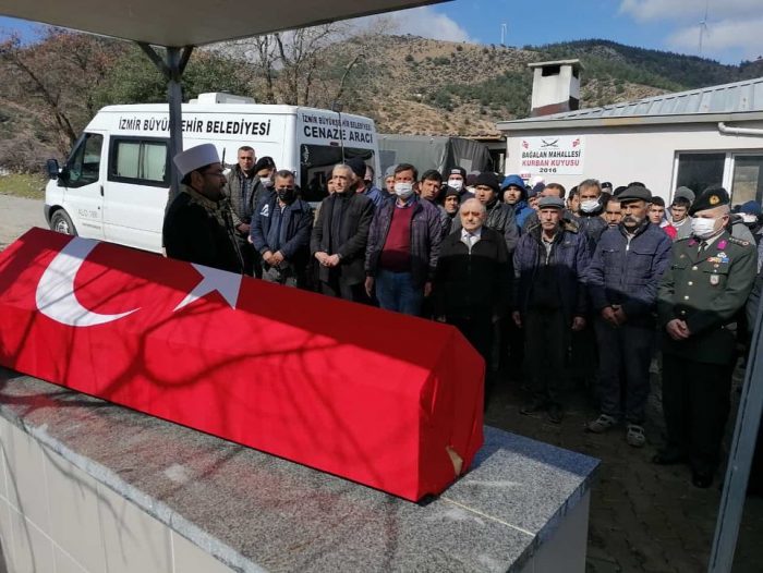 Kınık’ta düzenlenen askeri törenle toprağa verilen, Kıbrıs Gazisi Ali Ekber Gelir için ilk olarak evinin önünde dualar edildi.
