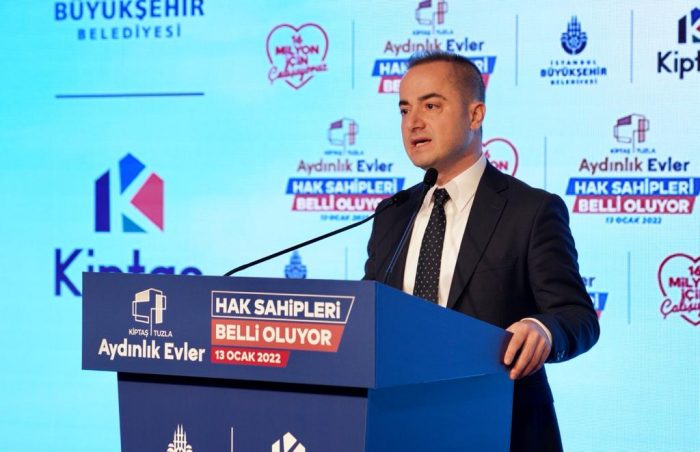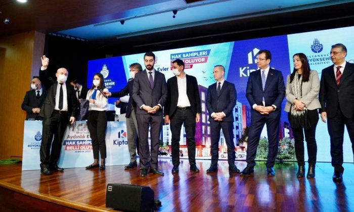 İBB iştiraki KİPTAŞ’ın, temelini 13 Aralık 2021’de attığı, toplam 343 bağımsız birimden oluşan Türkiye’nin en ucuz sosyal konut uygulaması ‘Tuzla Aydınlık Evler’ projesine rekor katılım sağlandı. Noter tarafından onaylanan 158 bin 42 kişi arasında gerçekleştirilen kura çekim töreninde konuşan İBB Başkanı Ekrem İmamoğlu, “İstanbul’a iş üretmeye devam edeceğiz. İstanbul’un her hususunda; sosyal konuttan altyapısına, dünyanın en çok metro yapan şirketinden İstanbul’a en fazla bir dönemde yeşil alan kazandıran belediyesine varıncaya kadar, her hususta özenli bir yönetim olmaya devam edeceğiz. Ve günün sonunda biz, bu şehrin 16 milyon insanını mutlu edeceğiz. Bir avuç insanı mutlu etme çabasında asla olmadık, olmayacağız” dedi.