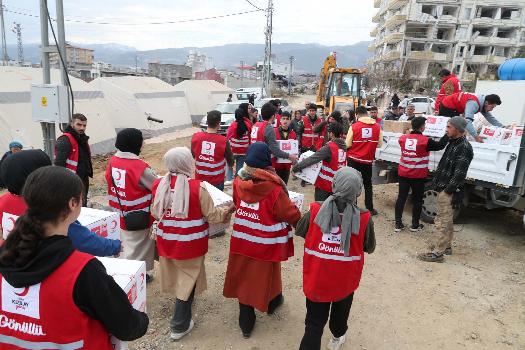11 ili etkileyen depremin ardından Kızılay tüm afet bölgesinde günde üç öğün olarak verdiği beslenme desteğinin yanı sıra özellikle çadır kentlerde ve kırsal kesimlerde kalan afetzedelere diğer insani yardım malzemelerini de ulaştırıyor. Kızılay, battaniye, kışlık kıyafet, ısıtıcı, mama, çocuk bezi, gıda kolisi ve hijyen kolisi gibi malzemeleri dağıtımına devam ediyor.