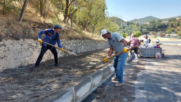 Öncelikle yolun ilk kısmında yol yapısı ve asfalt kaplamanın bozulmaması ve genel olarak yolun zarar görmemesi için, önümüzdeki yıl planlanan doğalgaz hatlarının döşenmesi bu yıla alınarak yol boyunca doğalgaz hatlarının döşenmesi sağlanarak asfalt öncesi yağmur suyu geçişleri için ve dere kenarında yeşil alan olarak düzenlenecek kısımlara sulama suyu hatları çekildi. Bu çalışmaların yanında yaklaşık 570 metre uzunluğunda 9 metre genişliğinde asfalt serimi tamamlandı. Bugün yapılan parke taşı çalışmasına değinen başkan Maçoğlu, bütçe ve imkânların olmamasının halka hizmeti engelleyemeyeceğini vurgulayarak, “Özellikle muhalif belediyelerin bütçe sıkıntısı olduğunu biliyorsunuz. Biz de bu bilinçle kolektif bir çalışmayı ön plana çıkarmak istiyoruz. Halkımız, dostlarımızdan oluşan 100 kişilik ekip uzun yıllardır sıkıntılı olan Demiroluk virajının parke işini yapıyoruz. Esas olan şudur; paramız bütçemiz olmasa da ihaleler yapamasak da biz halkımıza, emekçilerimize güveniyoruz. Zaman zaman böyle çalışmalar yapacağız. Bütçeleri beklersek bir iş yapamayacağız” dedi. AHA.