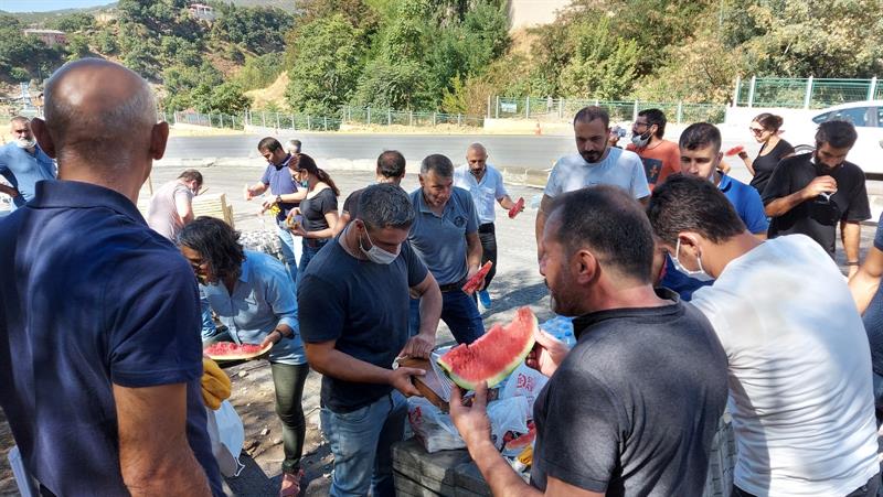 Belediyemiz çalışmalarını halka yaymak, her bir bireyin belediye çalışmalarının bir öznesi olması adına ve fiili anlamda sokağa yansıyacak olan pratik faaliyetleri büyütmek ve bunları kazanımlara dönüştürmek için Demiroluk yolu kaldırımlarının parke taşı döşeme çalışması kolektif bir şekilde yaptı.