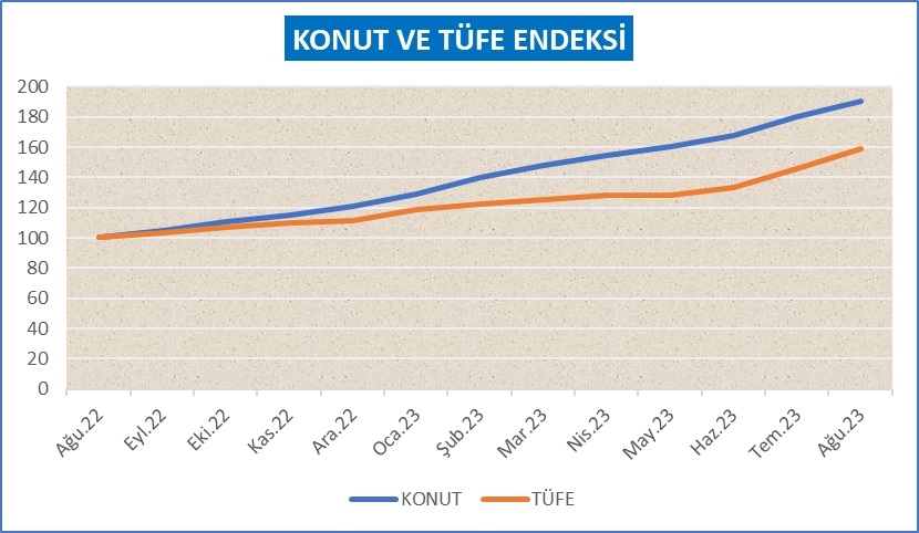 Mamafih; Ekim 2023 itibariyle son bir yılda konut fiyatları yine enflasyonun üstünde arttı. Ancak eskisi gibi ikiye katlamadı. Enflasyon yüzde 60 konut fiyatları yüzde 90 arttı. İstanbul Ticaret Odası geçinme endeksine göre bu fark daha da az oldu.