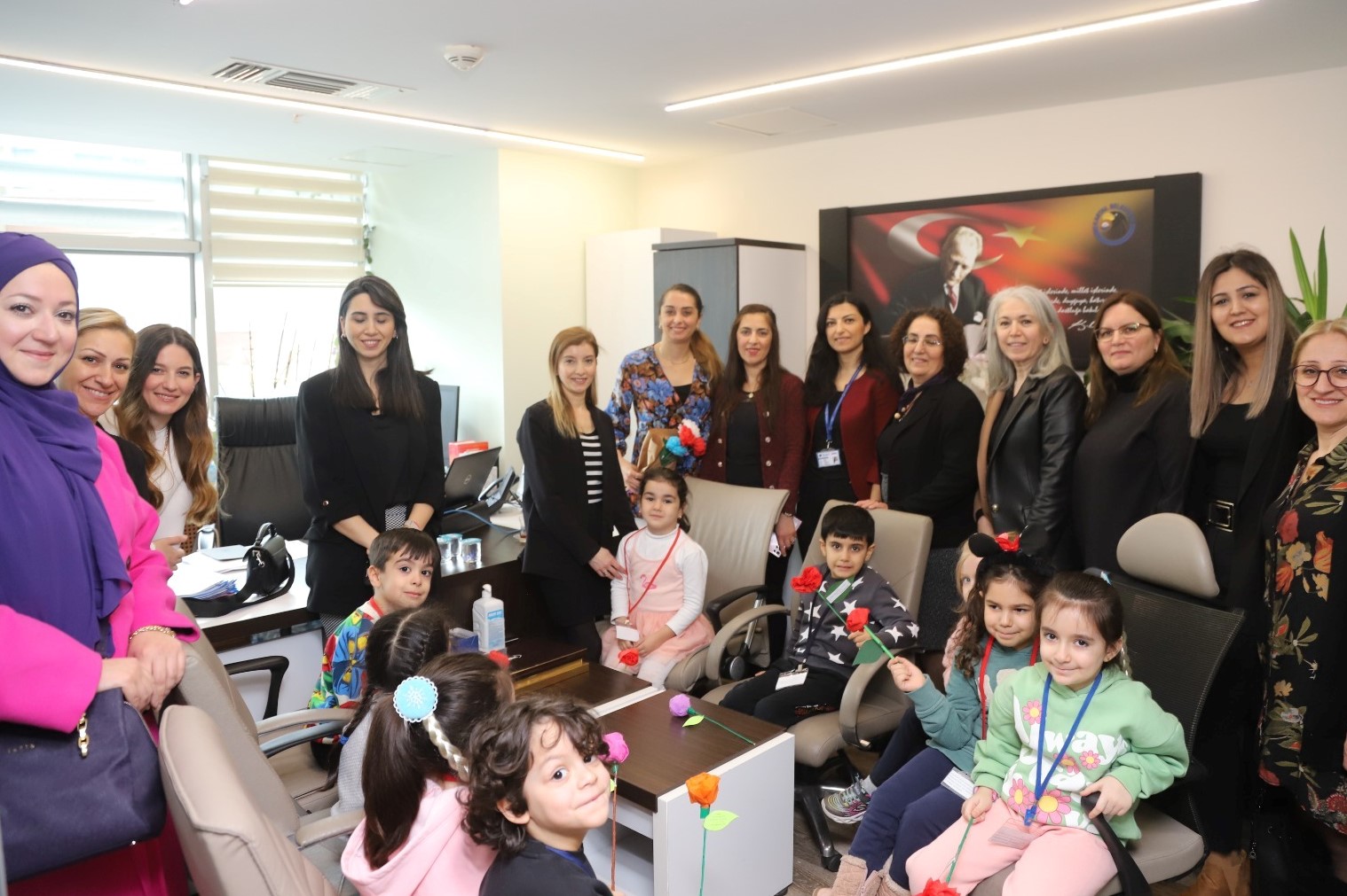 Başta Kartal Belediyesi Kreş Müdürü Hilal Kıraç, 15 kreşin sorumluları ve öğretmenleri ile birlikte tüm birimleri tek tek dolaşan çocuklar, kadın müdür ve personele kendi elleriyle hazırladıkları renkli çiçeklerden oluşan hediyelerini verdi.