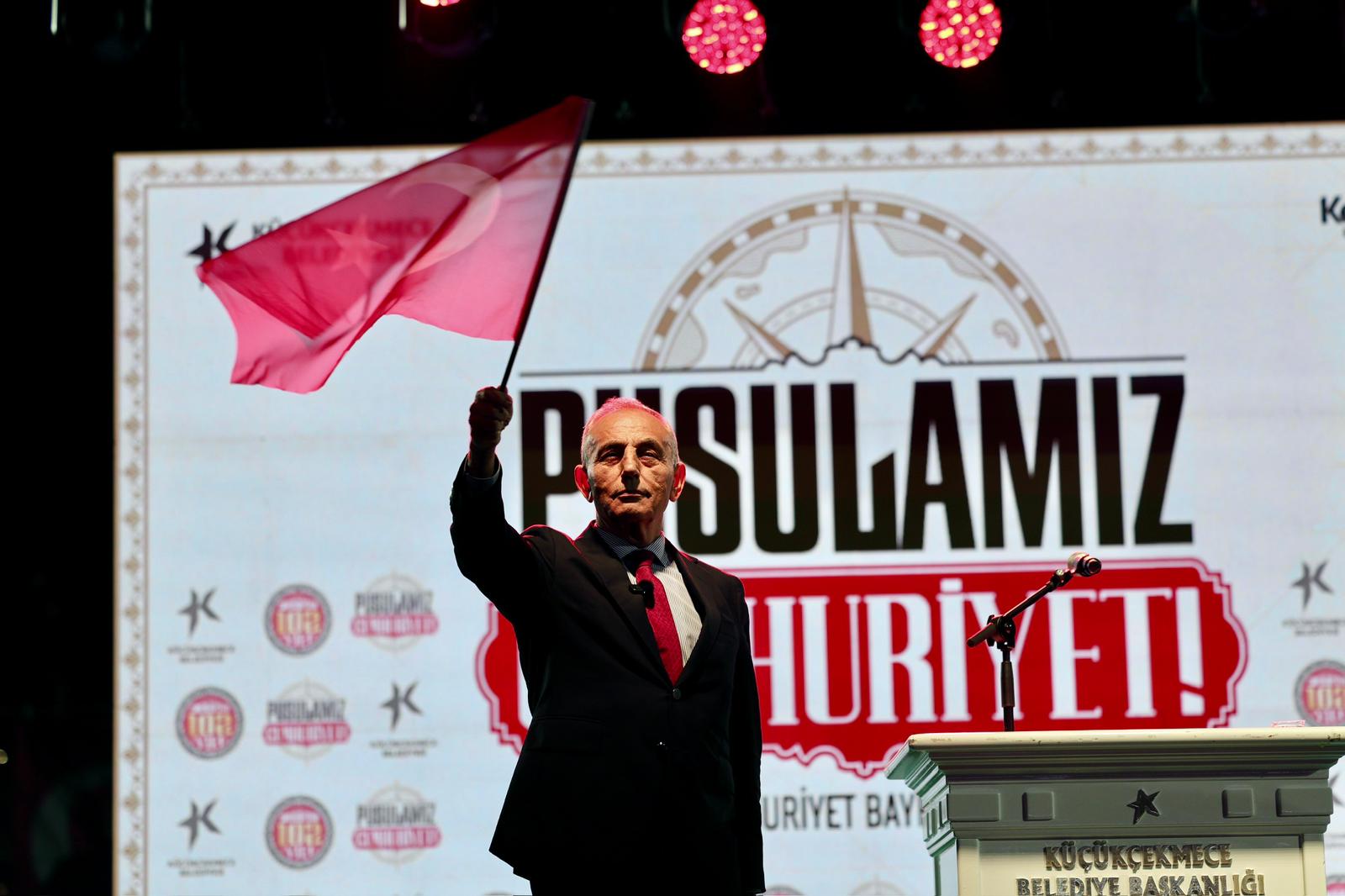 Küçükçekmece’de 29 Ekim Cumhuriyet Bayramı coşkuyla kutlandı. Küçükçekmece Belediyesi’nin düzenlediği kutlama programı, yüzlerce kişinin katıldığı Cumhuriyet yürüyüşünün ardından İBB Küçükçekmece 100. Yıl Stadı’nda devam etti.