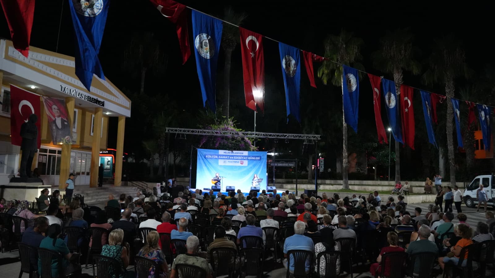 Milas Belediyesi Güllük Hizmet Binası önünde gerçekleştirilen etkinliğe vatandaşlar yoğun ilgi gösterdi. Erken saatlerden itibaren alanı doldurmaya başlayan Güllüklü vatandaşlar seslendirilen şarkıları hep bir ağızdan söyleyerek alkışlarla eşlik etti. Söyleşi etkinliğinde cep telefonlarından fotoğraf ve videolar çekerek anları ölümsüzleştiren vatandaşlar sanat dolu bir akşam yaşadılar.