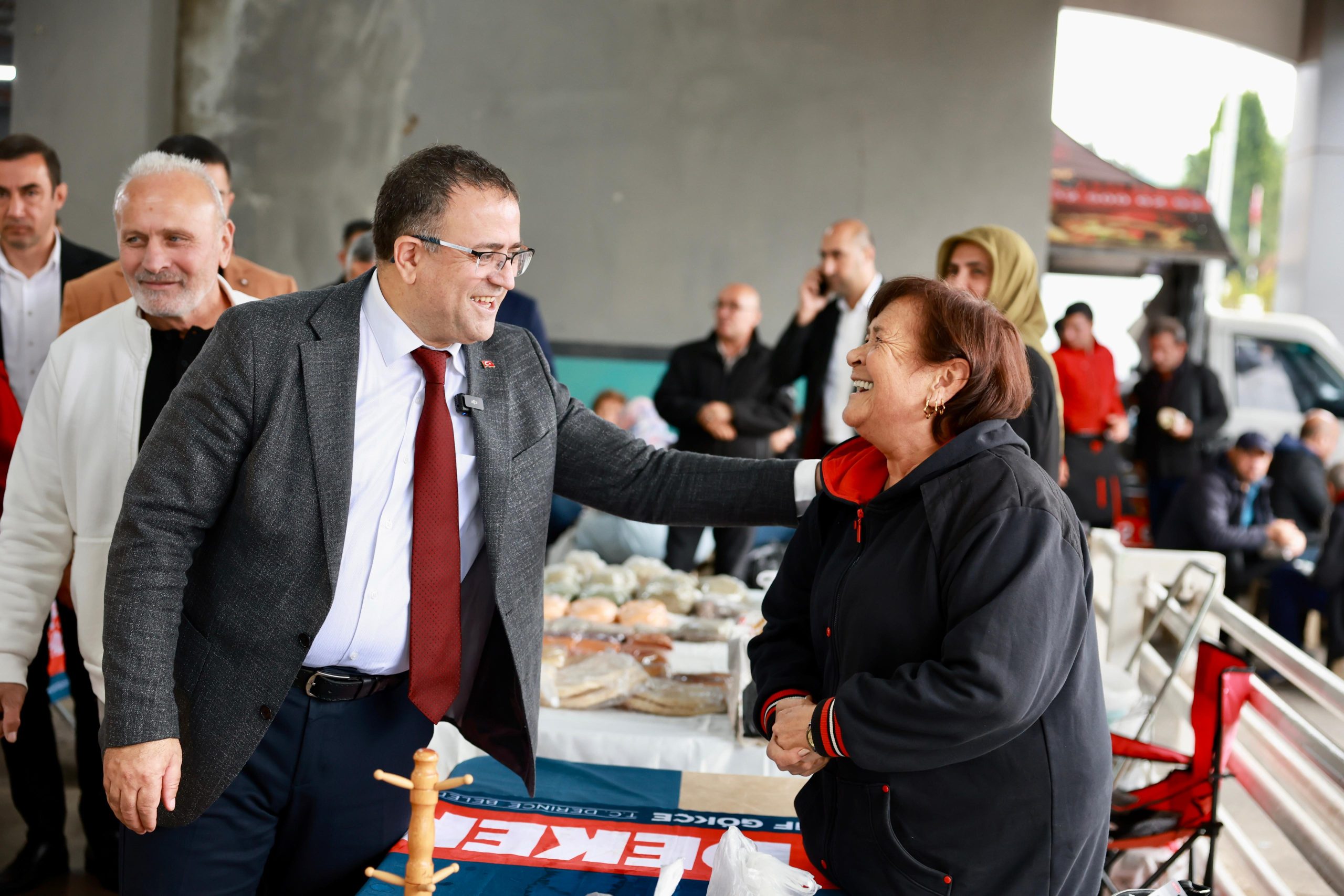 PAZAR 1-2-3-4-5: Derince Kadın El Emeği Pazarı ile Antika İkinci El ve Kumaş Pazarı’nı ziyaret eden Başkan Gökçe, vatandaşlarla tek tek selamlaşırken, esnaflara bol ve bereketli kazançlar temennisinde bulundu.