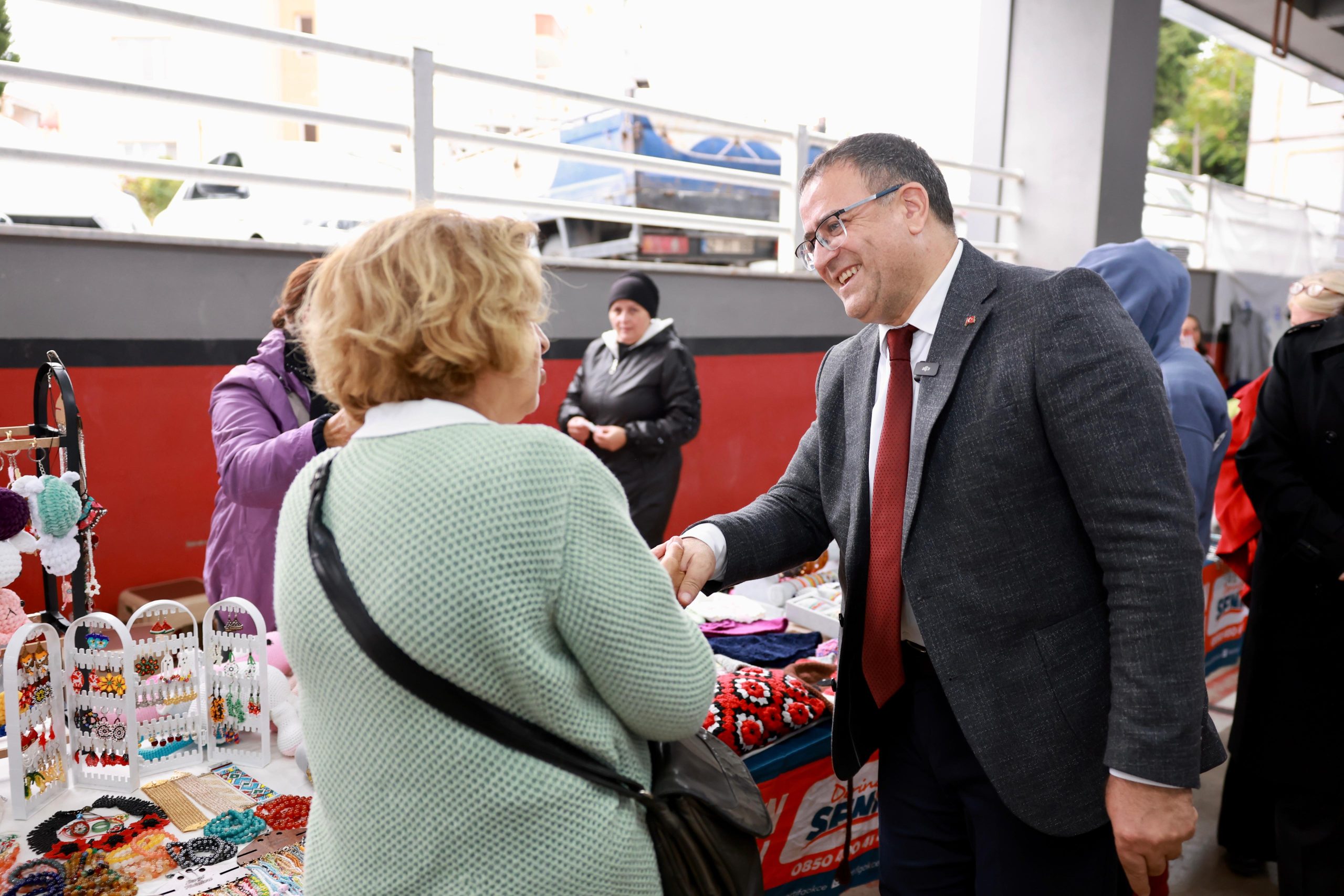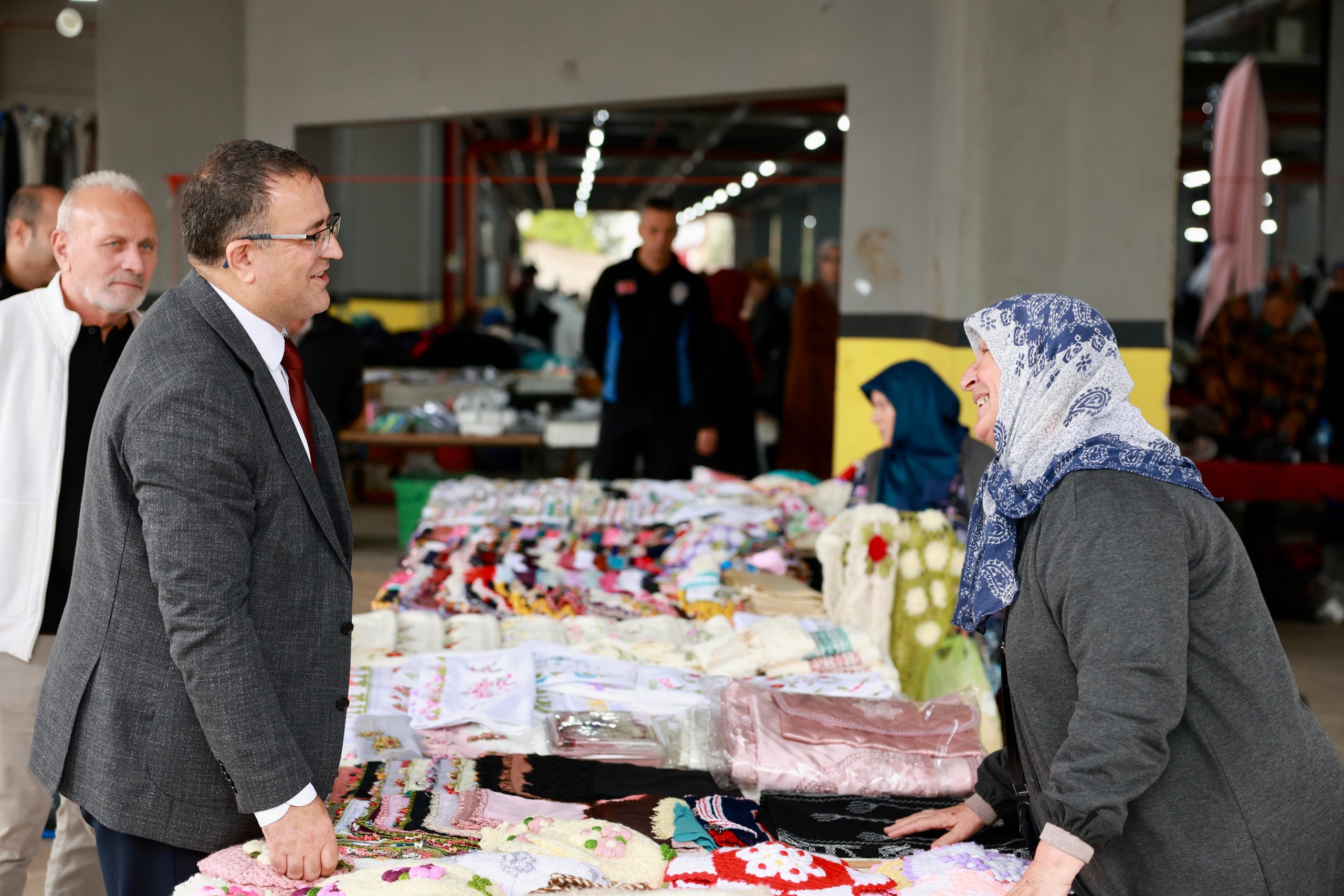 Derince Belediye Başkanı Av. Sertif Gökçe, Senin Kafen’in açılışını gerçekleştirdikten sonra Derince Kadın El Emeği Pazarı ile Antika İkinci El ve Kumaş Pazarı’nı ziyaret etti