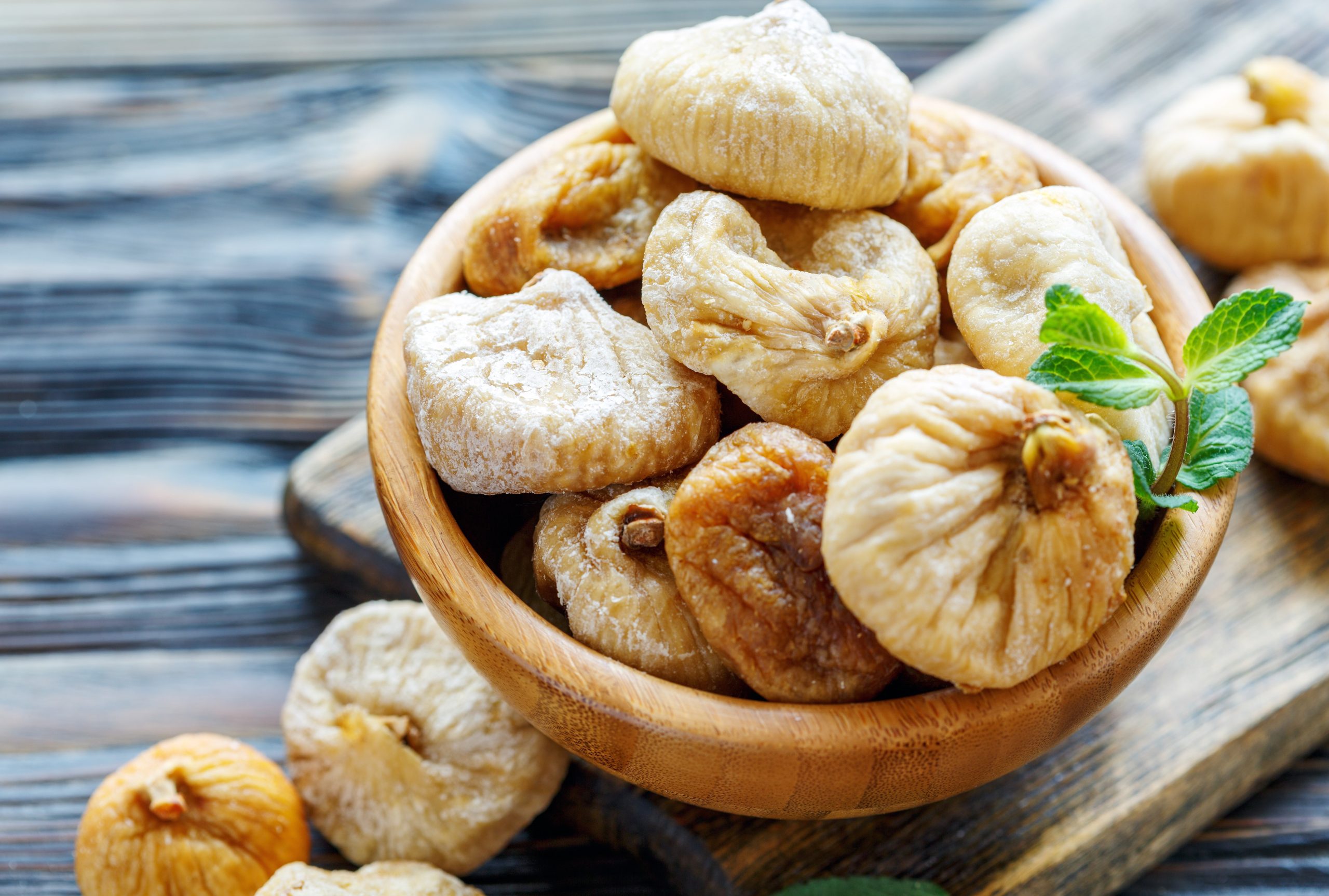 Dried figs in a bowl closeup.