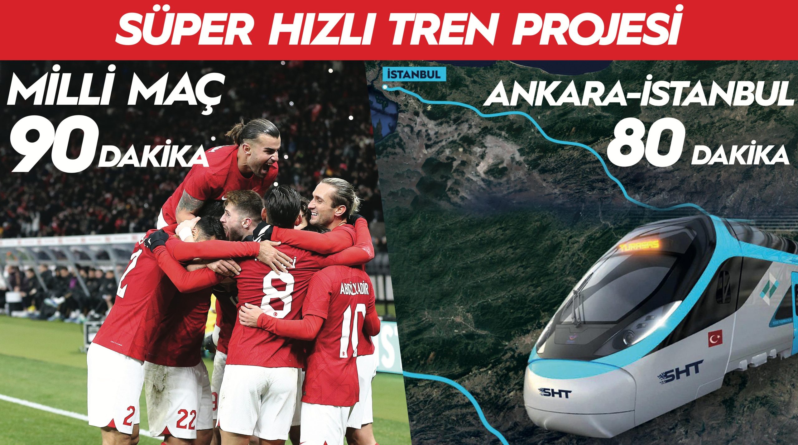 Ulaştırma ve Altyapı Bakanı Abdulkadir Uraloğlu, “Maç 90 dakika, ama biz Ankara’dan İstanbul’a 80 dakikada gideceğiz. Süper hızlı trenle bunu gerçekleştireceğiz” dedi.