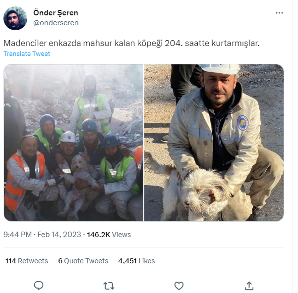 T.C. Enerji ve Tabii Kaynaklar Bakanlığı 9 Şubat’ta “Adıyaman’dan 90. saatte bir güzel haber daha. Gün ışığının değerini en iyi bilen madencilerimiz, Tarık’a aydınlık dolu bir geleceğin kapılarını araladı.” şeklinde paylaşım yaparken,