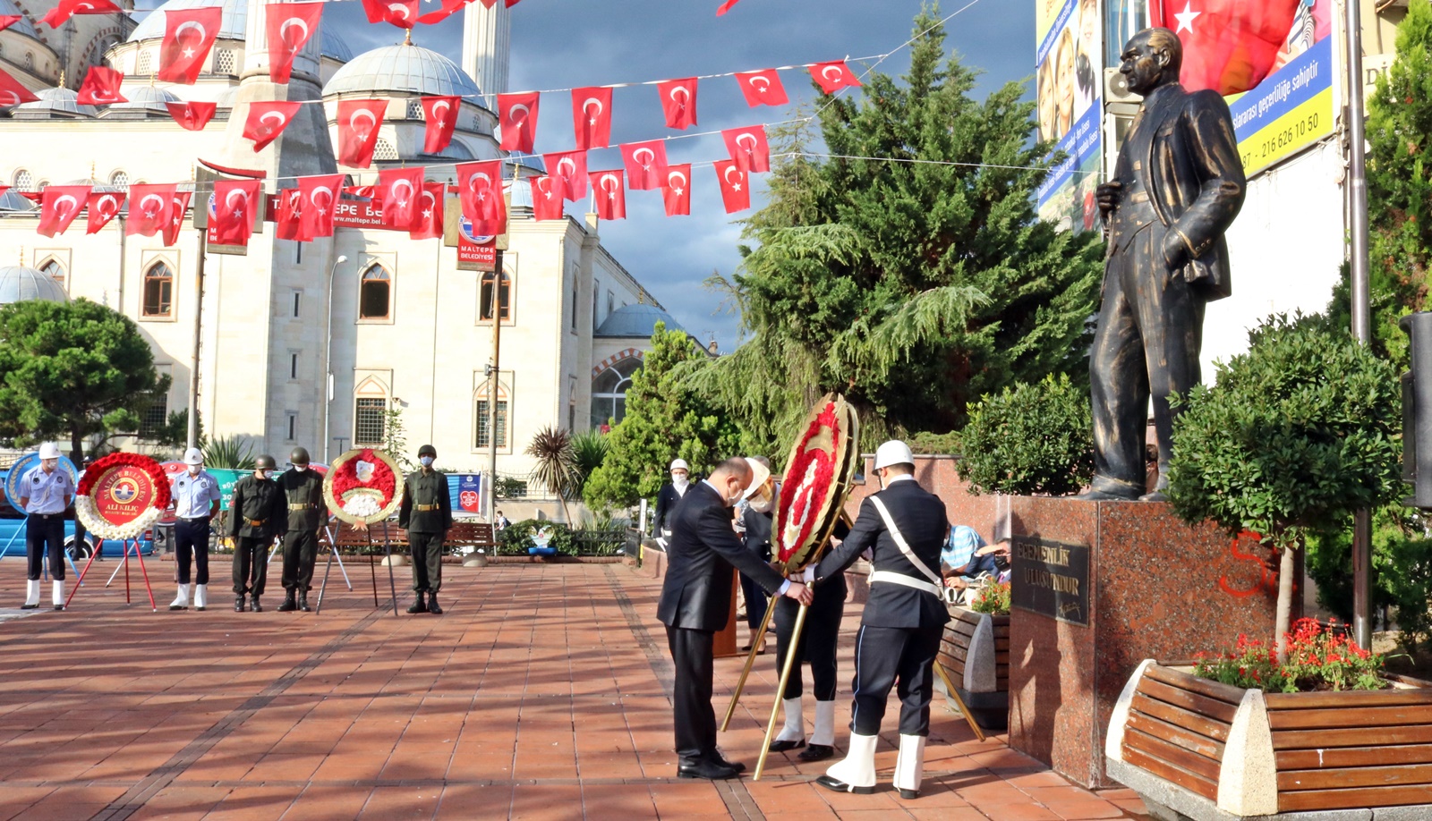 Türkiye Cumhuriyeti’nin kurucusu Ulu Önder Mustafa Kemal Atatürk’e gazi unvanı ve mareşal rütbesi verilmesinin 99’uncu yıl dönümü ve ‘Gaziler Günü’ münasebetiyle Maltepe Cumhuriyet Meydanında Atatürk anıtına çelenk sunma töreni yapıldı.