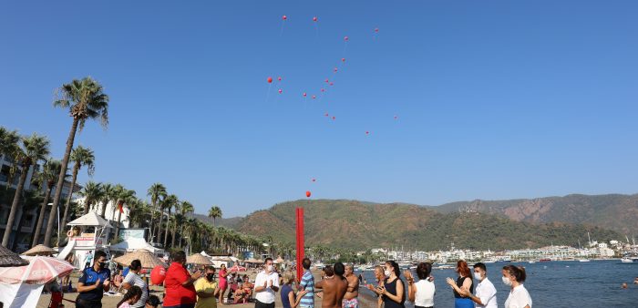 Belediye personeli Şeref Uyar’ın DMD Hastası oğlu Ayaz Can Uyar’ın da katıldığı etkinliğe, plajda güneşlenen vatandaşlar da destek verdi. “Düşenin dostu olmaz” sloganıyla ellerindeki balonları gökyüzüne bırakan katılımcılar DMD hastalığına dikkat çekti.