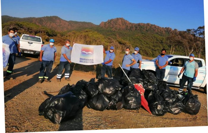 Hafta sonu kavurucu sıcağa rağmen Bördübet, Akmusluk ve Amazon koylarında çevreye gelişigüzel atılmış çöpleri topladı. Belediye personeli ayrıca otoban kenarları, seyir tepeleri ve sahil bandından da temizlik yaptı. Toplanan onlarca torba atık, bertaraf merkezine taşındı.