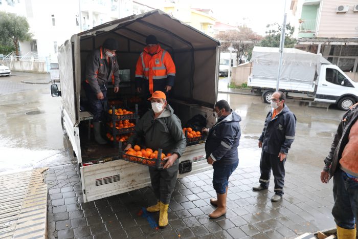 Marmaris’in kaldırımlarında sadece palmiye ağaçlarının veya süs bitkilerinin değil meyve ağaçlarının da bulunduğunu söyleyen Marmaris Belediye Başkanı Mehmet Oktay, “İklimimizin ve güzelliğimizin bir parçası olan meyve ağaçlarımızın da sürekli bakımını yapıyoruz. Geçtiğimiz yıl olduğu gibi bu yıl da turunçların dallarda çürümesine izin vermedik. Toplayıp halkımıza dağıttık. Herkese afiyet olsun” diye konuştu.