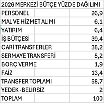 2026 Bütçe de yatırımların payı yüzde 6,4’tür. Bu mevcut kamu yatırımlarının amortismanına yetmez. Dahası kamu -özel yatırımları nedeni ile gerek 2026 ve gerekse gelecek bütçeler de ipotek altındadır.