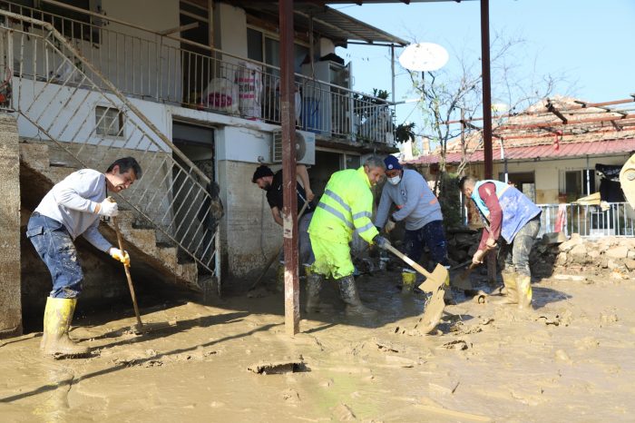 İzmir’de aşırı yağışlar nedeniyle oluşan sel felaketinde mağdur olan Menderesli vatandaşların yaraları sarılmaya başlandı. Menderes Belediyesi ve İZSU ekiplerinin ortak çalışmasıyla hasar gören su boruları yenilenirken, evlerini su basan vatandaşlara yardım eli uzandı. Zarar gören evlerde temizlik ve bakım işleri Menderes Belediyesi tarafından gerçekleştiriliyor.
