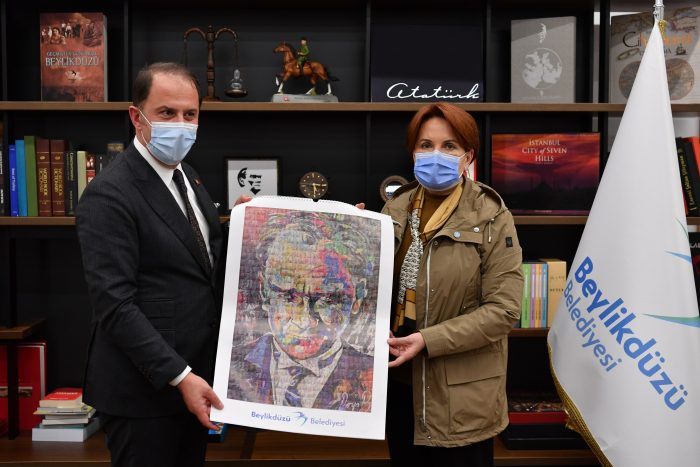 Beylikdüzü’nde yapılan çalışmaları yakından takip ettiğini belirten Akşener, “İlçeye yaptıkları yatırımlardan dolayı Belediye Başkanımız Mehmet Murat Çalık’a teşekkür ediyor başarılarının devamını diliyorum. Bugün ilçedeki esnaflarımızla da bir araya geldik, oy istemeye değil onların dertlerini, sıkıntılarını dinlemeye geldik” dedi. Çalık ise “İYİ Parti Genel Başkanı Sayın Meral Akşener çeşitli ziyaretlerde bulunmak üzere bugün ilçemize geldi. Ziyaretlerinin ardından kendisini Beylikdüzü Atatürk Kültür ve Sanat Merkezimizde ağırladık. Yaşar Kemal Kütüphanesi’ni ziyaret ettik, yapımını tamamladığımız Fatma Ana Cemevi ve Kültür Merkezimizin yapısıyla ilgili de kendisine bilgi verdim. Bir takım fikir alışverişlerimiz oldu, değerli ziyaretiyle bizleri onurlandıran Genel Başkana teşekkür ediyorum” ifadelerini kullandı.