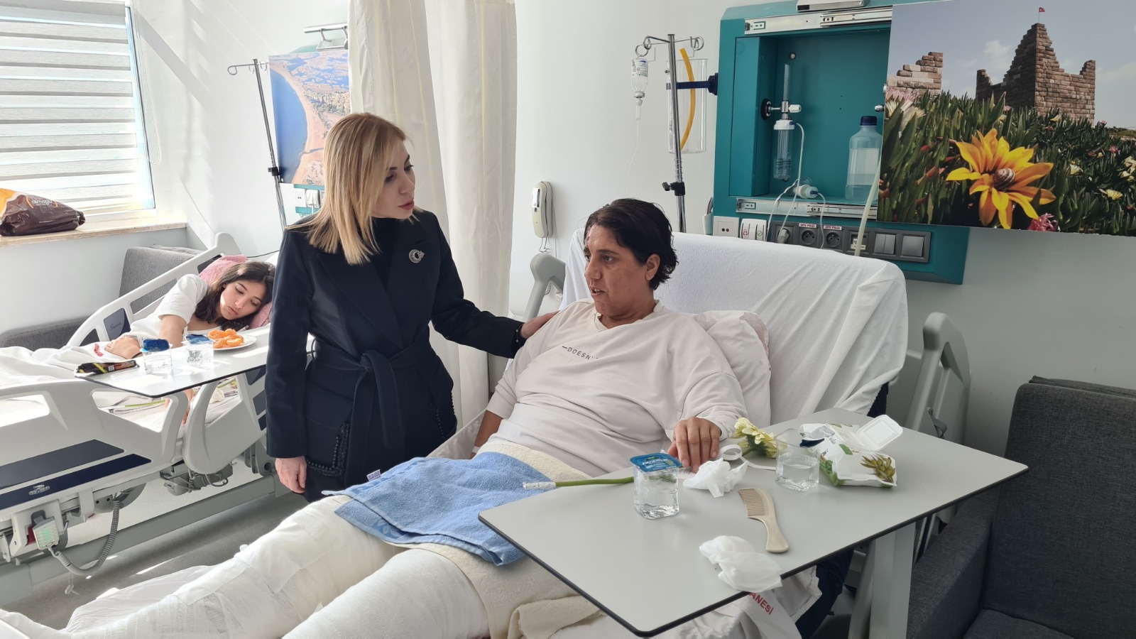 AK Parti Muğla Milletvekili Yelda Erol Gökcan,  deprem sonrası Muğla’ya getirilerek,  hastanede tedavi altına alınan depremzedeleri ziyaret etti.