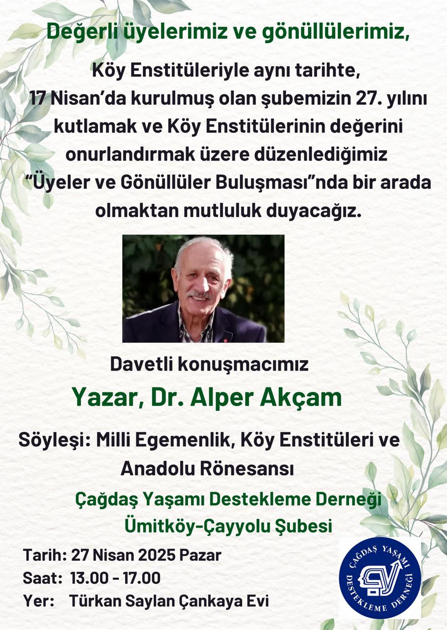Bugün Saat 13.30’da Çankaya Belediyesi Çağdaş Sanatlar Merkezi Sabahattin Ali Salonu’nda, yarın 123.00’te Çayyolu ÇYDD salonunda Cumhuriyetimizin millet egemenliği ve Köy Enstitüleri öyküsü üzerine konuşup yarım kalmış Anadolu Rönesansı yolunda kendimize bir yol-yöntem arayışı içinde olmayı sürdüreceğiz.