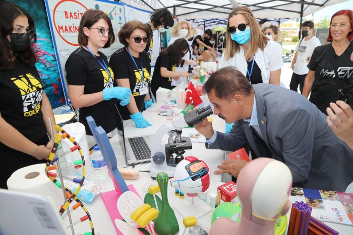 Atakum Belediye Başkanı Av. Cemil Deveci, tek tek standları gezerek öğrencilerin deney ve çalışmalarını izledi. Biyoloji standında kan grubuna baktıran ve mikroskopta sinir hücresi inceleyen Başkan Deveci, kimya standında ‘kütlenin korunumu’ deneyini izledi. Görsel sanatlar standında seramik tozlarından yapılmış Atatürk heykellerini inceleyen Başkan Deveci, daha sonra minik öğrencilerle fotoğraf çektirdi.