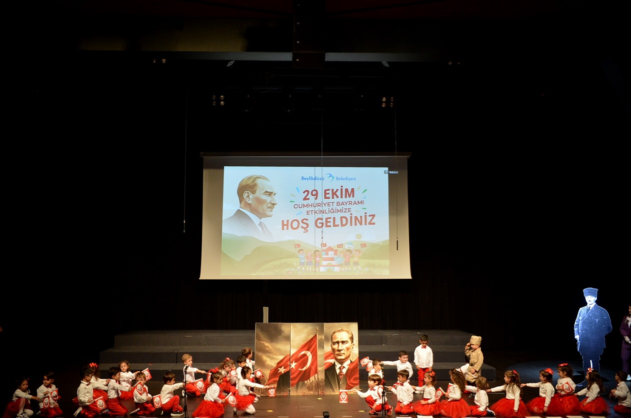 Beylikdüzü Belediyesi’ne bağlı gündüz çocuk bakımevlerinde eğitim gören öğrenciler, 29 Ekim Cumhuriyet Bayramı’nın 102. yıl dönümünü birbirinden renkli sahne gösterileriyle kutladı. Etkinliğe katılan Beylikdüzü Belediye Başkan Vekili Av. Önder Serkan Çebi ve Zehra Çalık öğrencilerin heyecanına ortak oldu.