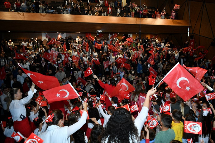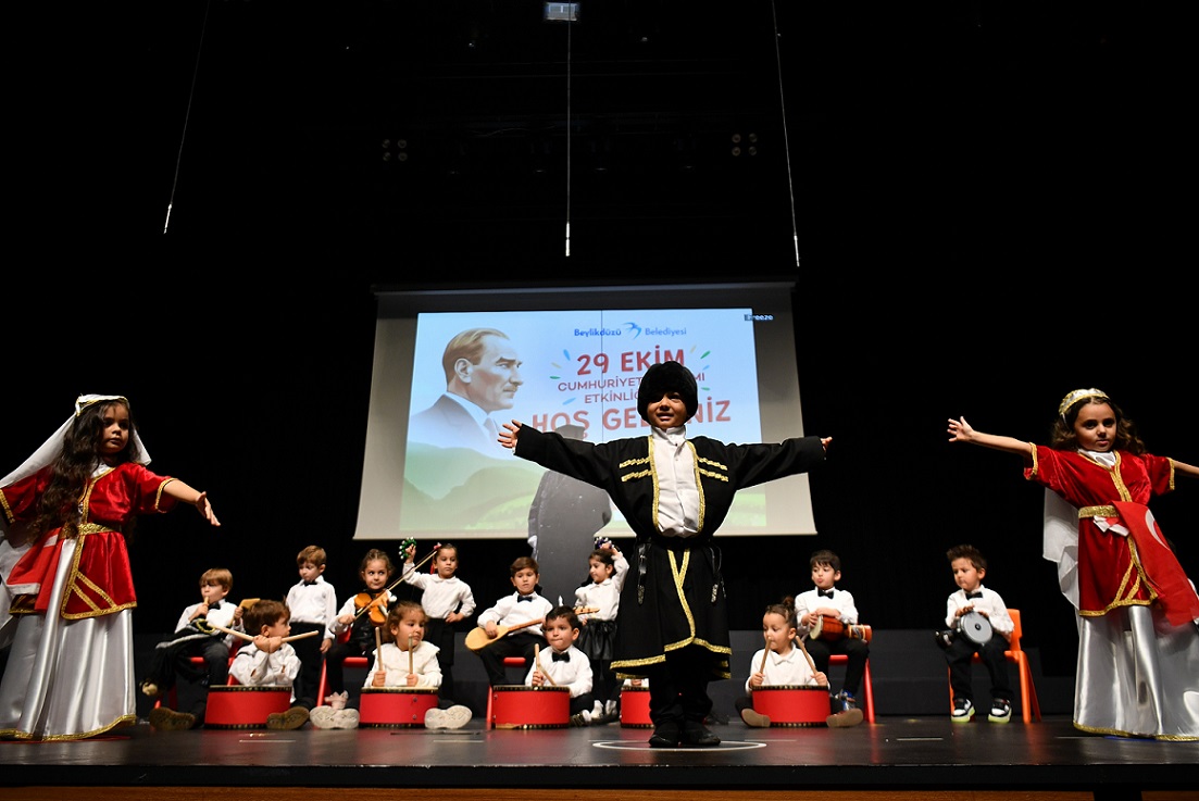 Beylikdüzü Belediyesi’ne bağlı gündüz çocuk bakımevlerinde eğitim gören öğrenciler, 29 Ekim Cumhuriyet Bayramı’nın 102. yıl dönümünü birbirinden renkli sahne gösterileriyle kutladı. Etkinliğe katılan Beylikdüzü Belediye Başkan Vekili Av. Önder Serkan Çebi ve Zehra Çalık öğrencilerin heyecanına ortak oldu.