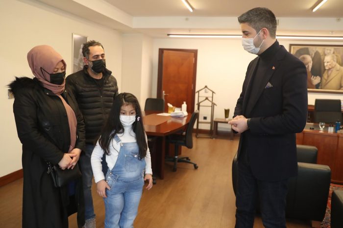 Balerin olma hayalinin olduğunu ve daha sonra öğrenci yetiştirmek istediğini anlatan Azra’ya hayallerinden asla vazgeçmemesini söyleyen Başkan Gökhan Yüksel, bu konuda her zaman yanında olacağını belirterek: “Bugün seni ve kıymetli aileni ağırlamaktan çok mutlu oldum, çok güzel bir haberi paylaşmak için buraya geldin, seni bu kadar sağlıklı gördüğüm için ayrıca çok mutluyum. Çok güzel hayallerin var. Bunu gerçekleştirmen için bir ağabeyin olarak her türlü desteğe hazırım. Ama fizik tedavi sürecini çok önemsiyorum, öncelikle ona odaklanalım. Bundan sonra Sağlık İşleri Müdürlüğümüzdeki ablaların, ağabeylerin senin fizik tedavi merkezine gidiş gelişlerinde yanında olacak. Fizik tedavinin olduğu haftanın 3 günü seni evinden alacak, merkeze ulaştıracak ve ardından evine sağ salim yetiştirecekler. Sende mucizeler çok, bu süreci de başarılı bir şekilde atlatacaksın ve daha sonra hayallerine odaklanacağız.” Dedi.