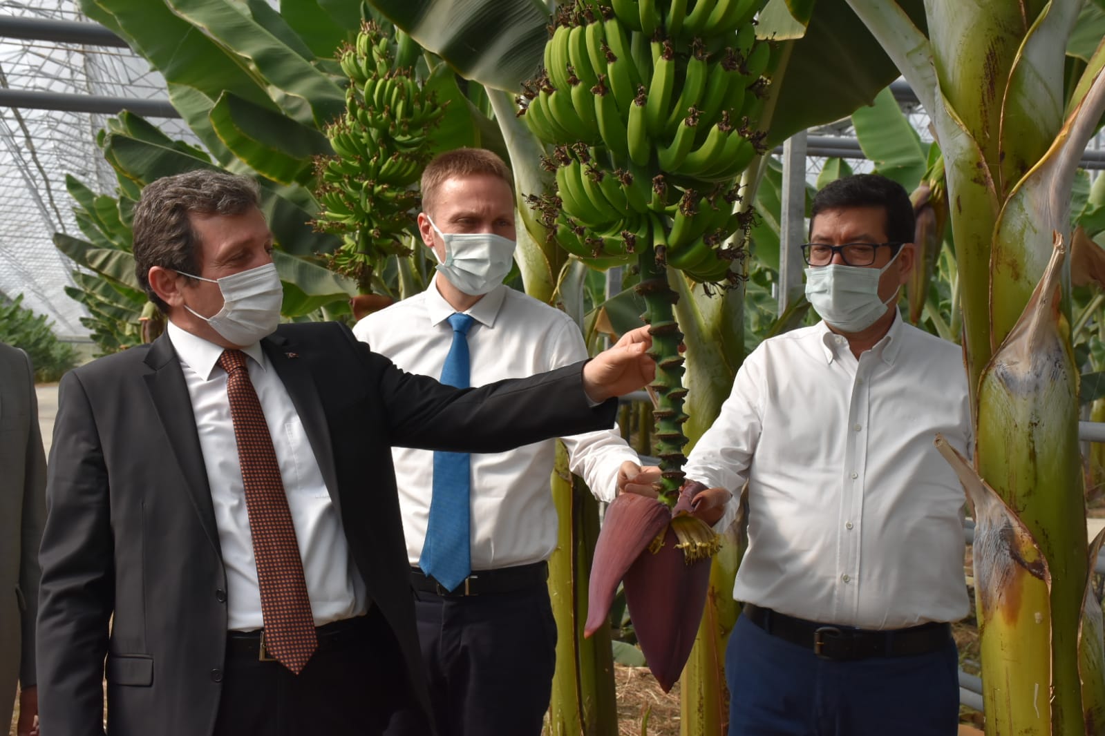 Daha sonra Damlıboğaz Mahallesinde Hamza Akay’a ait muz serası ziyaret edildi. 52 dekar kapalı alanda kurulan serada yapılan üretim hakkında bilgi alındı.