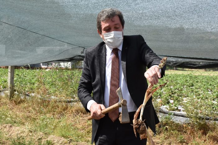 Ardından Vali Orhan Tavlı, Derince mahallesinde tarım arazilerinin kullanımının etkinleştirilmesi projesi kapsamında İl Müdürlüğünden aldığı destekle Ersan Döner’e ait tatlı patates projesi ile kurduğu tarlayı ziyaret etti. Tatlı patates üretimi, kullanım şekli ve faydaları hakkında bilgi aldı.