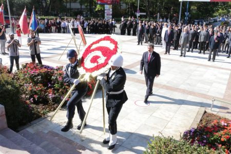 Atatürk Anıtı’na Valilik, Büyükşehir Belediye Başkanlığı ve Türkiye Harp Malulü ve Gazileri Şehit Dul ve Yetimler Derneği Muğla Temsilciliği çelenkleri koyuldu, saygı duruşunda bulunuldu ve İstiklal Marşı okundu. Günün anlam ve önemini belirten konuşma Muğla Şehit Aileleri Yardımlaşma ve Dayanışma Derneği Başkanı Kıbrıs Gazisi Süleyman Taşkesen tarafından yapıldı.