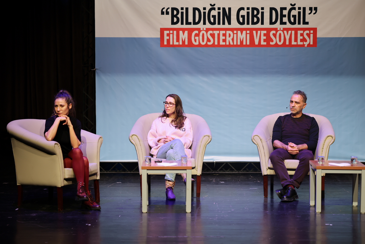 Moderatörlüğünü Ece Dizdar’ın yaptığı söyleşi öncesi ‘Bildiğin Gibi Değil’ filmi özel gösterimiyle sinemaseverlerle buluştu. Farklı hayatlara sahip üç kardeşin babalarının esrarengiz ölümü sonrası geçmişleriyle yüzleşmelerini ve kardeşlik bağlarını yeniden tanımlamalarını konu alan ve Tokat’ta çekilen film büyük ilgiyle izlendi.
