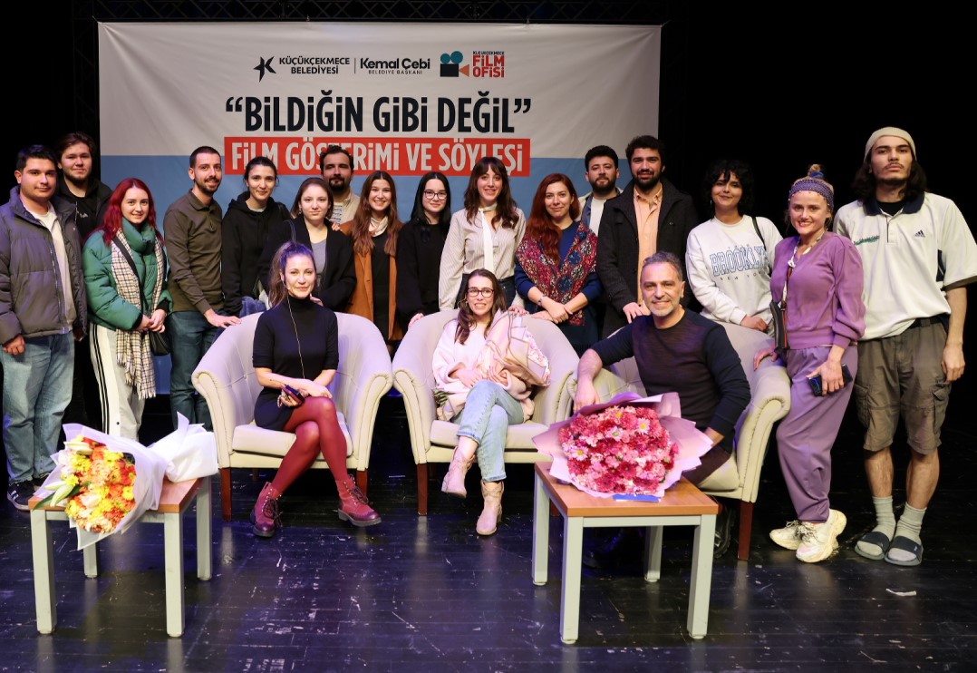 İstanbul Film Festivali’nden “En İyi Senaryo”, “En İyi Erkek Oyuncu”, “En İyi Kurgu” ve “Jüri Özel Ödülü” ile dönen “Bildiğin Gibi Değil” Film Ekibi, Küçükçekmece Belediyesi Film Ofisi’nin düzenlediği Sinema Söyleşilerine konuk oldu. Söyleşiye, filmin yönetmeni Vuslat Saraçoğlu, başrol oyuncusu Serdar Orçin ve filmin yapımcısı Mehmetcan Ünlü katıldı. Cennet Kültür ve Sanat Merkezi’nde gerçekleştirilen söyleşi öncesi oyuncularla bir araya gelen Küçükçekmece Belediye Başkanı Kemal Çebi, katılımlarından dolayı konuklara teşekkür etti.