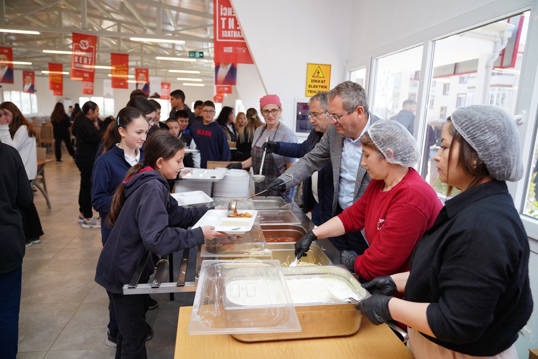 Ayvalık Belediye Başkanı Mesut Ergin, aile bütçelerine önemli bir katkı sağlayan öğrenci kent lokantalarına gösterilen ilgiden büyük bir memnunluk duyduğunu belirtti. Geçtiğimiz yıl boyunca toplam 86 bin 624 tabldot yemek servisi yapılan Öğrenci Kent Lokantalarında, bu dönemde de üç çeşit yemek ve yanında meyveyi 30 TL gibi sembolik bir ücretle öğrencilerle buluşturmaya devam ettiklerini ifade eden Başkan Mesut Ergin, “Öğrencilerin bütçelerini zorlamadan sağlıklı, doyurucu ve lezzetli yemeklere ulaşabilmeleri için çalışıyoruz. Sağlıklı, doyurucu ve lezzetli yemeklerle öğrencilerimizin enerjisini artıracak bir ortam hazırladık. Lokantalarımız Ayvalık Belediyesi’nin tam sorumluluğunda, öğrencilerimiz düşünülerek titizlikle hazırlandı” diye konuştu.