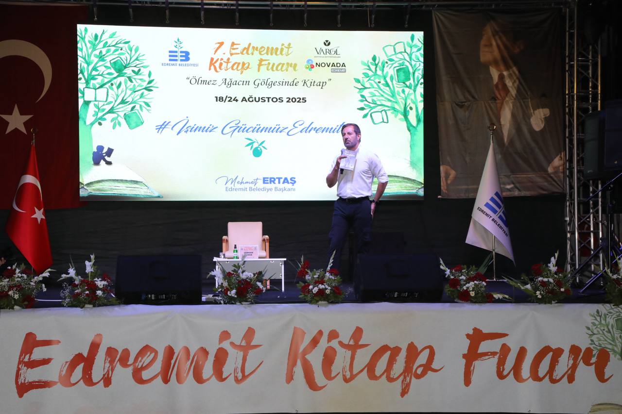 Açılışta konuşan Edremit Belediye Başkanı Mehmet Ertaş, kitapların ve fuarların toplumun aydınlanma yolculuğundaki önemine dikkat çekti. Atatürk’ün “Savaş bitti, artık yeni savaşımız kültür ve sanat savaşıdır” sözünü hatırlatan Ertaş, “Okuduğumuz her kitap, cehaletle mücadelemize katkı sunuyor. Bu fuar yalnızca sizlere değil, bu toprakları kurtaran Kuvay-i Milliyecilere, Atatürk’e ve Aydınlık Cumhuriyete armağandır” dedi.