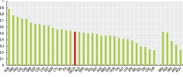 Bu endekse göre OECD ortalama puanı 5,2 puandır. Türkiye‘nin puanı ise 2,3 puandır. (Aşağıdaki grafiği aynen aldım.)