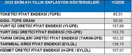 Geçen sene Kasım ayında aylık TÜFE oranı yüzde 3,51 ve Aralık ayında yüzde 13,58 olmuştu. Bu sene Aralık ayında aylık TÜFE daha düşük olur ve yıllık TÜFE ‘de düşer. Ama tüm sektörlerde maliyet artışını gösteren yurt içi üretici fiyatları yüzde 150 üstünde olduğu için, 2023’te de TÜFE’nin yüksek seyredeceği açıktır. Kaldı ki; ekonomik istikrar programı olmayınca ve hükümetin piyasaya polisiye önlemlerle müdahale etmesi, enflasyonun anarşiye ve paniğe teslim olmasına neden oluyor. Bu durumda maliyete bağlı olmasa da satıcı fiyatları artırıyor.