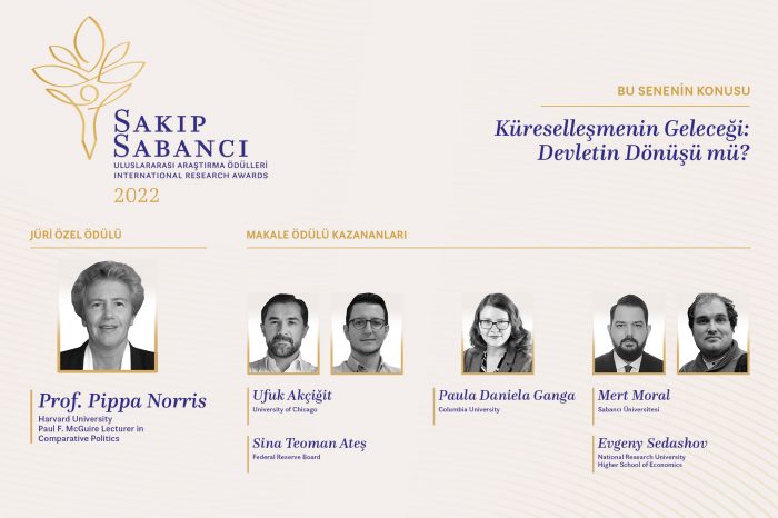 Sabancı Üniversitesi Onursal Başkanı Sakıp Sabancı’nın vasiyeti üzerine 17 yıldır düzenlenen Sakıp Sabancı Uluslararası Araştırma Ödülleri, sosyal bilimler alanında değer katan çalışmaları ödüllendirmeyi sürdürüyor. 2022 yılı konusu “Küreselleşmenin Geleceği: Devletin Dönüşü mü?” olarak belirlenen Sakıp Sabancı Uluslararası Araştırma Ödülleri’nde Jüri Özel Ödülü, Harvard Üniversitesi’nde 30 yıldır Paul McGuire Öğretim Üyesi olarak karşılaştırmalı politika dersi veren Prof. Dr. Pippa Norris’e verildi. Yönetim sistemleri, seçim güvenliği, demokrasi gibi konularda 50 kitabı bulunan ve Google Scholar’a göre siyaset bilimi alanında en çok atıf alan ikinci bilim insanı Profesör Norris, aynı zamanda Harvard ve Sydney Üniversiteleri iş birliğiyle hayata geçen Seçim Bütünlüğü Projesi’nde de direktörlük görevini üstleniyor.