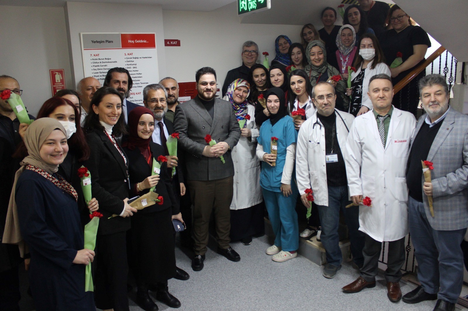 BTP Genel Başkanı Hüseyin Baş konuşmasının ardından sağlık çalışanlarına gül dağıttı.