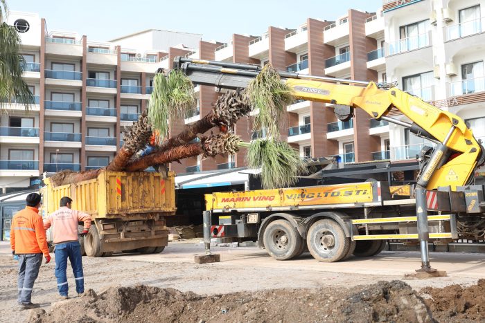 Tek bir ağaca bile zarar vermeme kararlığıyla ağaçlandırma ve yeşillendirme çalışmalarını aralıksız sürdüren Marmaris Belediyesi yol yapım, üst yapı veya bakım onarım çalışması yapılan yerlerde bulunan ağaçlar da kesilmek yerine başka noktalara nakletmeye devam ediyor. Geçtiğimiz aylarda yol yapım çalışmalarının yanı sıra birbirlerine çok yakın olduğundan veya elektrik tellerine değdiği için bulundukları yerden sökülen palmiyeleri Ulusal Egemenlik Caddesi’ne diken Marmaris Belediyesi Park ve Bahçeler Müdürlüğü ekipleri bu kez sahil bandında dikim yapmaya başladı. Ekiplerin Uzunyalı girişinden İçmeler’e kadar yürüyüş yolu paralelindeki sahile 85 adet palmiye, 10 bin adet de zambak dikeceği açıklandı.