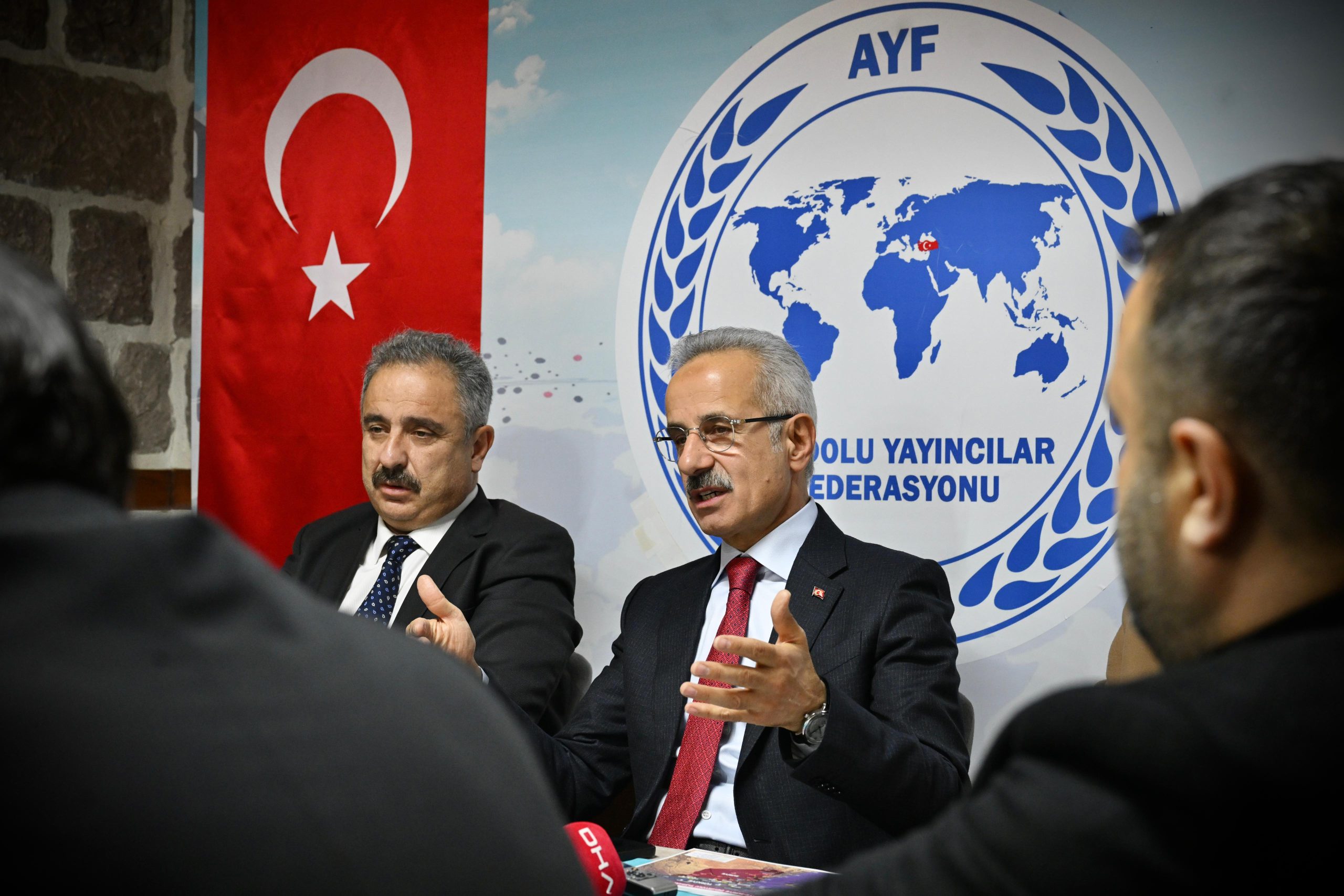 Ulaştırma ve Altyapı Bakanı Abdulkadir Uraloğlu, Anadolu Yayıncılar Federasyonu Programı kapsamında gazetecilerin sorularını yanıtladı. Bakan Uraloğlu, Suriye ile ilgili açıklamalarda bulunarak Bakanlık olarak ulaştırmanın ve iletişimin tamamında varlık gösterdiklerini kaydetti. Uraloğlu, “Bulunduğumuz coğrafya gerçekten kıymetli. Bizim coğrafyamızı bilmeyen bir insana haritamızı gösterirseniz gerçekten en kıymetli yer Türkiye diyecektir. Sadece 4 saatlik uçuşla 67 ülkeye, yaklaşık 1,5 milyar insana ulaşabiliyoruz. 51,2 trilyon dolar gayrisafi milli hasıladan, yıllık 12,5 trilyon dolar ticaret hacminden bahsediyoruz böyle bir coğrafyadayız.” dedi.