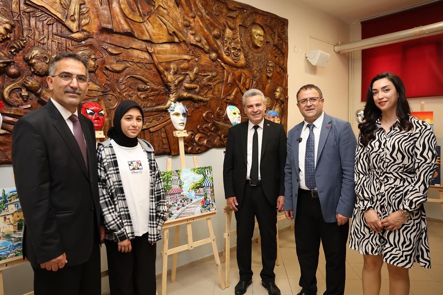 Şehit Mahmut Top Ortaokulu’nda düzenlenen Görsel Sanatlar Sergisi’ni ziyaret eden Başkan Gökçe, hazırladıkları birbirinden güzel eserler için öğrencileri tebrik etti
