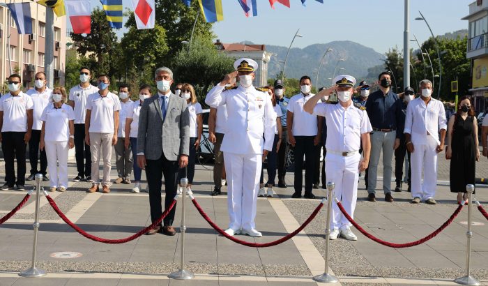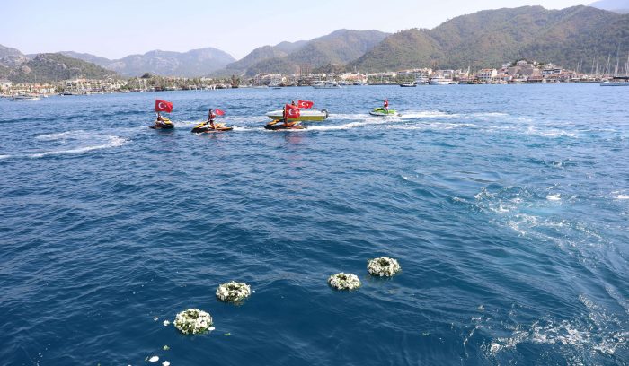 Marmaris Liman Başkanı Kurban’ın Atatürk Anıtı’na çelenk koymasının adından Ulu Önder Mustafa Kemal Atatürk ve deniz şehitleri anısına saygı duruşunda bulunuldu, İstiklal Marşı okundu. Ardından Marmaris Kaymakamı Ertuğ Şevket Aksoy, Aksaz Deniz Üs Komutanı Tuğamiral İbrahim Kurtuluş Sevinç, Marmaris Belediye Başkanı Mehmet Oktay, Marmaris Liman Başkanı Altuğ Kurban, Sahil Güvenlik botuyla körfeze açılarak deniz şehitleri anısına denize çiçek bıraktı. Bu sırada, ilçede faaliyet gösteren su sporları merkezlerinin çalışanları, jet skilerle gösteri yaptı.