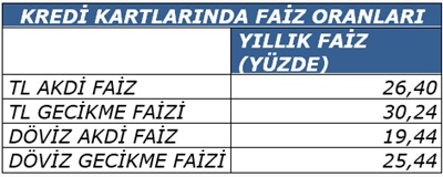 ‘’Bankaların mevduat hesaplarına ödedikleri ortalama faiz de yüzde 8’dir. Buna karşılık Bankalar kredi kartlarından TL için yüzde 26.40 akdi faiz ve yüzde 30.24 gecikme faizi, döviz için yüzde 19.44 akdi faiz ve 25.44 a gecikme faizi alıyorlar.
