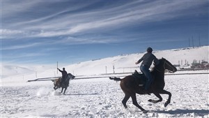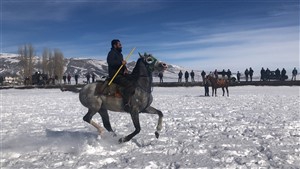 Kars’ın Selim ilçesinin Akçakale köyünde ata sporu ciriti yaşatmak için karlı sahaya çıkan usta ciritçiler hünerlerini sergiledi.