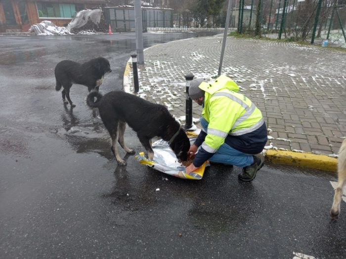 Sokakta yaşayan dostlarımızın aşırı soğuğa ve kar yağışına maruz kalmaları, vücut ısılarının ani bir şekilde düşmesine ve soğuğu hissedip üşümelerine sebep olmaktadır. En çok yağış alan bölgelerden biri olan Sarıyer’in de karlar altında kalması dolayısıyla kedi, köpek ve kuşların yoğun olduğu bölgelerde besleme çalışmaları iki katına çıkarıldı. Ekipler, ormanlık alanlar başta olmak üzere birçok bölgedeki noktalara hayvanlar için mama bırakıyor. Ayrıca besleme noktalarında tıbbi müdahaleye ihtiyaç duyan hayvanlar da veteriner hekim kontrolü altına alınarak, tedavi ediliyor.