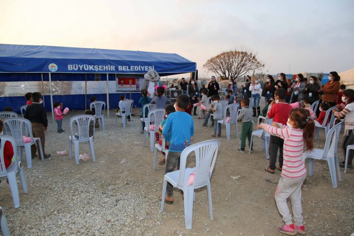 Mevsimlik tarım işçilerinin çadır kentte kalan çocukları, bir günlüğüne de olsa çocukça yaşadı. Çizgi film seyreden, gazoz içip, pamuklu şeker yiyen çocuklar, animatörler eşliğinde eğlendi. Çocuklara hikaye kitabı da dağıtıldı. Ebeveynleriyle birlikte zor şartlarda çadırlarda kalan ve geçim derdini her an hisseden çocuklar, Büyükşehir Derman ekiplerinin sayesinde bir günü çocukça yaşama olanağı buldu.