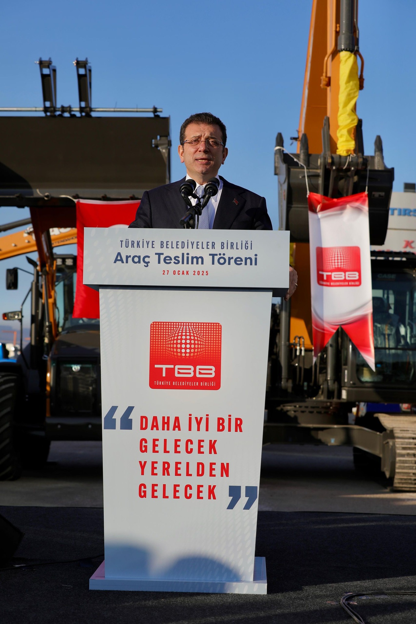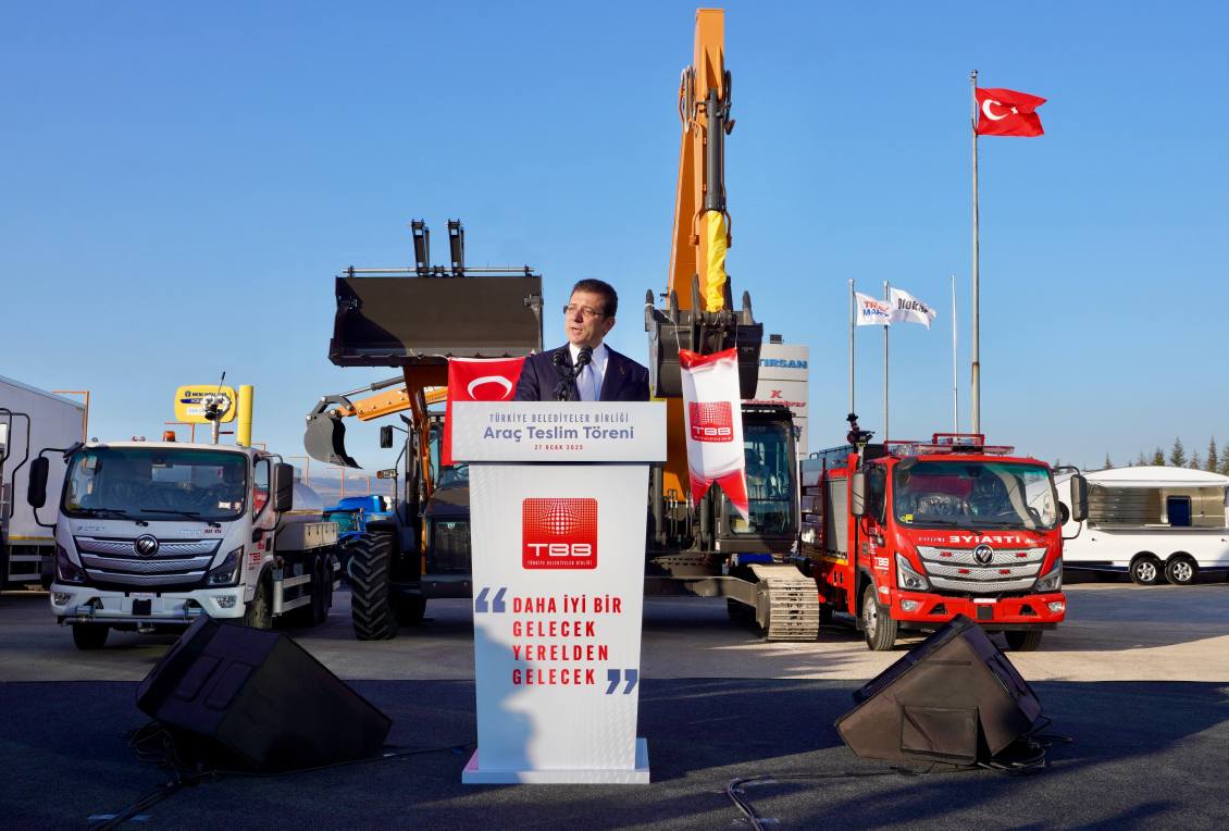 Türkiye Belediyeler Birliği (TBB), aralarında CHP, AK Parti, DEM Parti, MHP, DEVA, İYİ Parti ve Yeniden Refah Partisi’nden belediyelerin bulunduğu bazı il, ilçe ve belde belediyelerine çeşitli iş makineleri hibe etti. TBB ve İstanbul Büyükşehir Belediye (İBB) Başkanı Ekrem İmamoğlu’nun katıldığı törenle; 1 il ve 8 ilçeye itfaiye aracı, 8 ilçeye kazıcı yükleyici, 3 il ve 4 ilçeye ekskavatör, 2 ilçeye arazöz ve 9 ilçeye de çöp kamyonu desteğinde bulunuldu. Törende konuşan İmamoğlu, “Yeni bir yılın başındayız. Yardımlaşmanın, dayanışmanın belki de en çok ihtiyaç duyulacağı bir yılın içerisindeyiz” dedi. Ekonomik zorlukların yeni yıl içinde de yaşanacağının altını çizen İmamoğlu, “Kendi bütçesiyle birlikte, süreci iyi dengeleyen bir yerel yönetimler sürecini hep beraber beldelerimize yaşatmalıyız. Elbette bu konu sadece belediyelerin başarabileceği bir konu değildir. Bütüncül bir yöntemle mümkündür” diye konuştu.