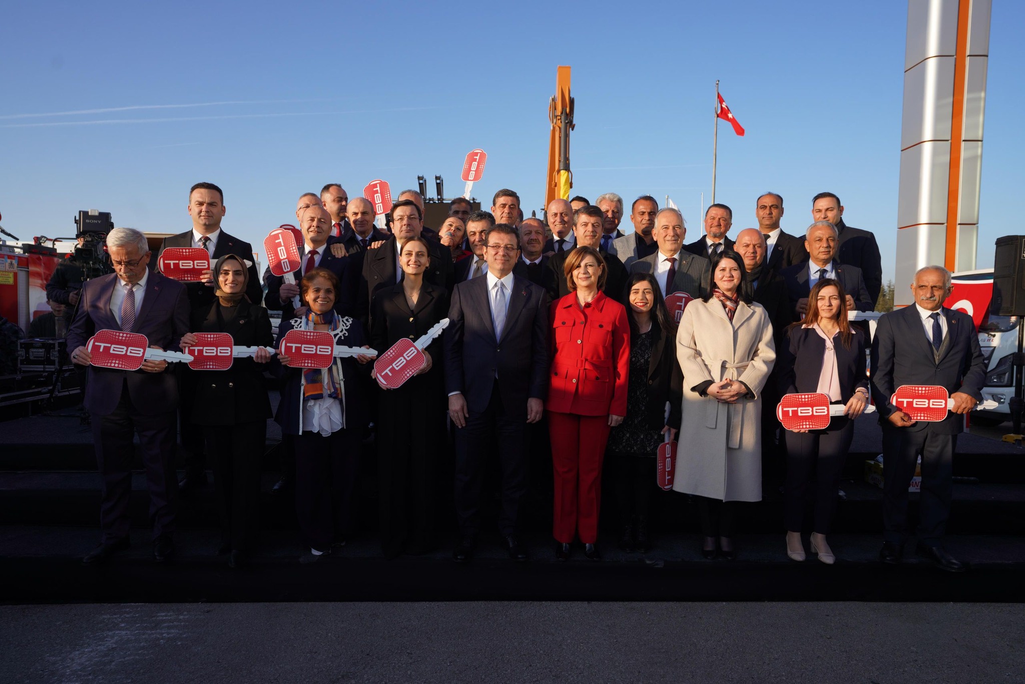 İmamoğlu, konuşmasının ardından, TBB encümeninde görevli Eskişehir Büyükşehir Belediye Başkanı Ayşe Ünlüce, Edirne Belediye Başkanı Filiz Gencan Akın, Adıyaman Belediye Başkanı Abdurrahman Tutdere ve Büyükçekmece Belediye Başkanı Hasan Akgün’ü yanına davet etti. İmamoğlu, sırasıyla; Adıyaman Çelikhan, Adıyaman İnlice, Adıyaman Şambayat, Afyonkarahisar Çay, Amasya Taşova, Antalya Korkuteli, Ardahan Merkez, Artvin Yusufeli, Balıkesir Erdek, Bartın Amasra, Bolu Göynük, Bolu Merkez, Çanakkale Merkez, Çorum Kargı, Diyarbakır Çınar, Elazığ Mollakendi, Erzurum Karaçoban, Gaziantep Yavuzeli, Giresun Görele, Hatay Dörtyol, Hatay Erzin, Hatay Kırıkhan, İzmir Güzelbahçe, Kahramanmaraş Nurhak, Kilis Polatlı, Malatya Yeşilyurt, Mardin Mazıdağı, Mersin Anamur, Muş Bulanık, Osmaniye Türkmen, Şanlıurfa Bozova, Tokat Merkez ve Trabzon, Beşikdüzü belediye başkanlarına temsili anahtarlarını teslim etti.