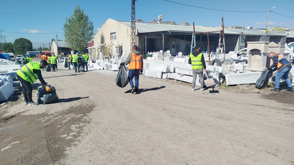 Süpürge araçlarının da her gün şehrin belirli noktalarında yürüttüğü çalışmalarla destek verdiği temizlik işçileri bu kez de sanayi sitesine adeta çıkarma yaptı. Ekipler sanayi sitesine sağlı sollu olarak dağılarak genel bir temizlik çalışması gerçekleştirdiler.