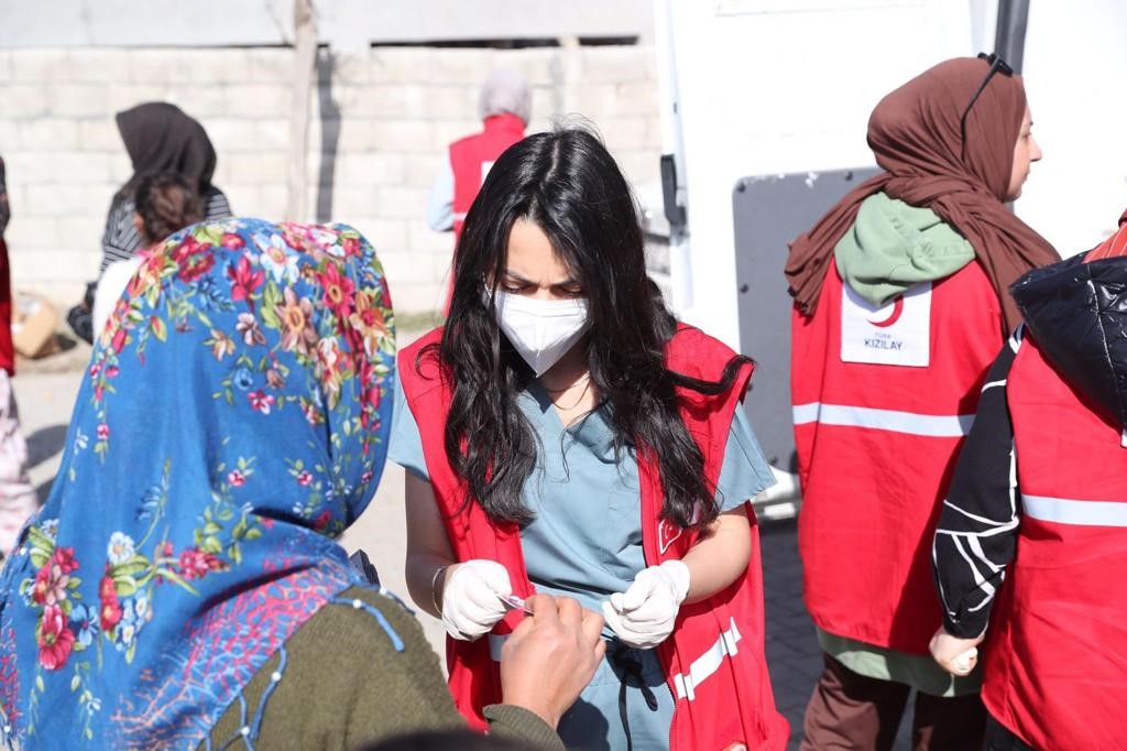 Kızılay sağlık ekipleri, şeker hastalığından uzuvlarının kaybetmiş, yaşlı ve dışarı çıkamayan afetzedeler başta olmak üzere ihtiyacı olan herkese sağlık hizmeti vermeye devam ederken gidilen yerleşim yerlerinde psikososyal destek hizmetleri ve ihtiyacı olanlara tekerlekli sandalye gibi sosyal yardımlarda hızlıca verilmektedir.